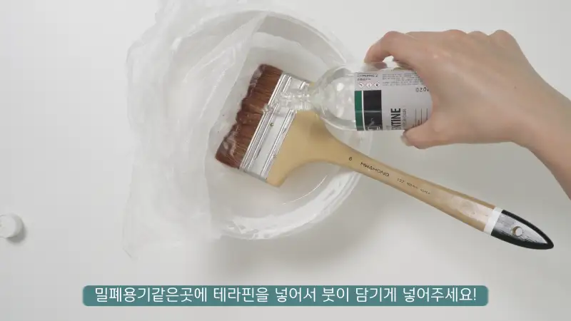 바니쉬의 사용 빈도가 잦다면~ 저처럼 밀폐용기에 테라핀을 부어놓고 밀폐해 놓는 것도 방법이에요!! (다만 붓이 굳지 않아서 편하긴 한데 냄새가 좀 새어나온다는 단점이....)