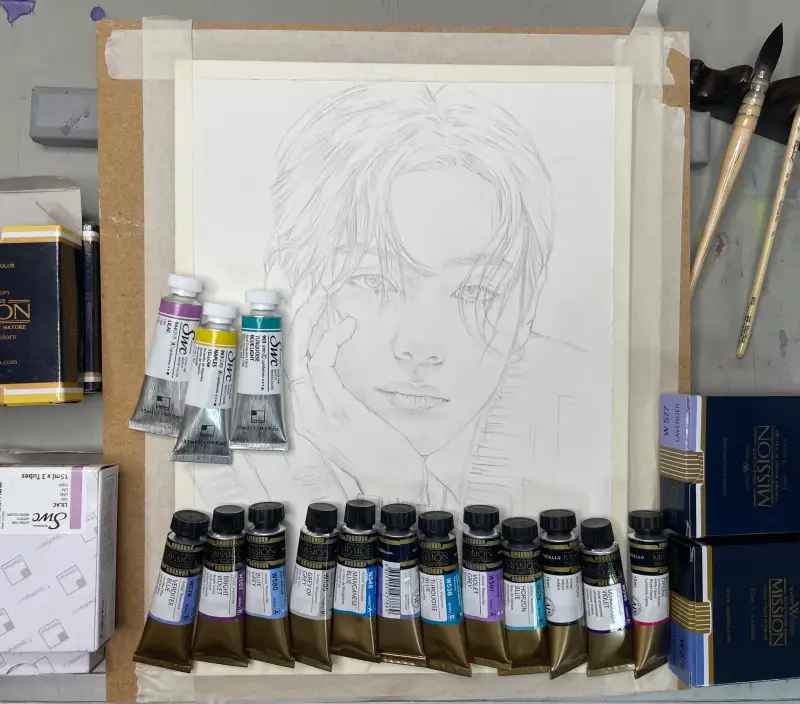 저는 인물화를 주로 그리기 때문에, 피부톤과 어울리는 색 위주로 브랜드별로 골라 쓰고 있어요. 너무 저렴하지도, 그렇다고 과하게 고가도 아닌, 중간 정도 가격대지만 퀄리티는 높은 조합이라서 인물화를 시작하시는 분들께 추천드려요.