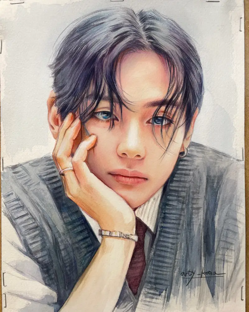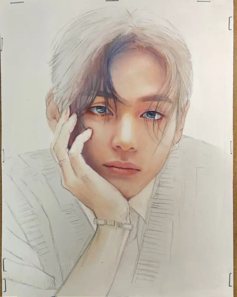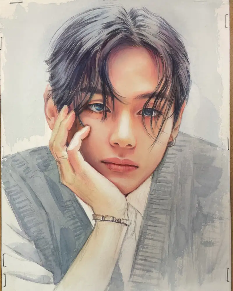 • 머리카락은 Indigo와 Manganese Blue를 활용해 차분하고 깊이 있는 톤을 만들고, 피부 옆에 닿는 부분은 Violet Grey를 살짝 섞어 자연스럽게 연결합니다.
