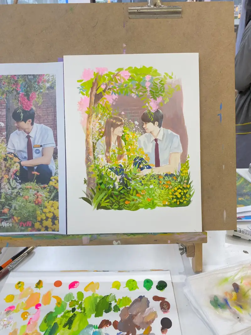 요즘 가장 붐이 일어나는 선재업고 튀어를 소재로 선택해서 그림을 그려봤어요