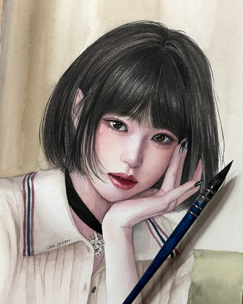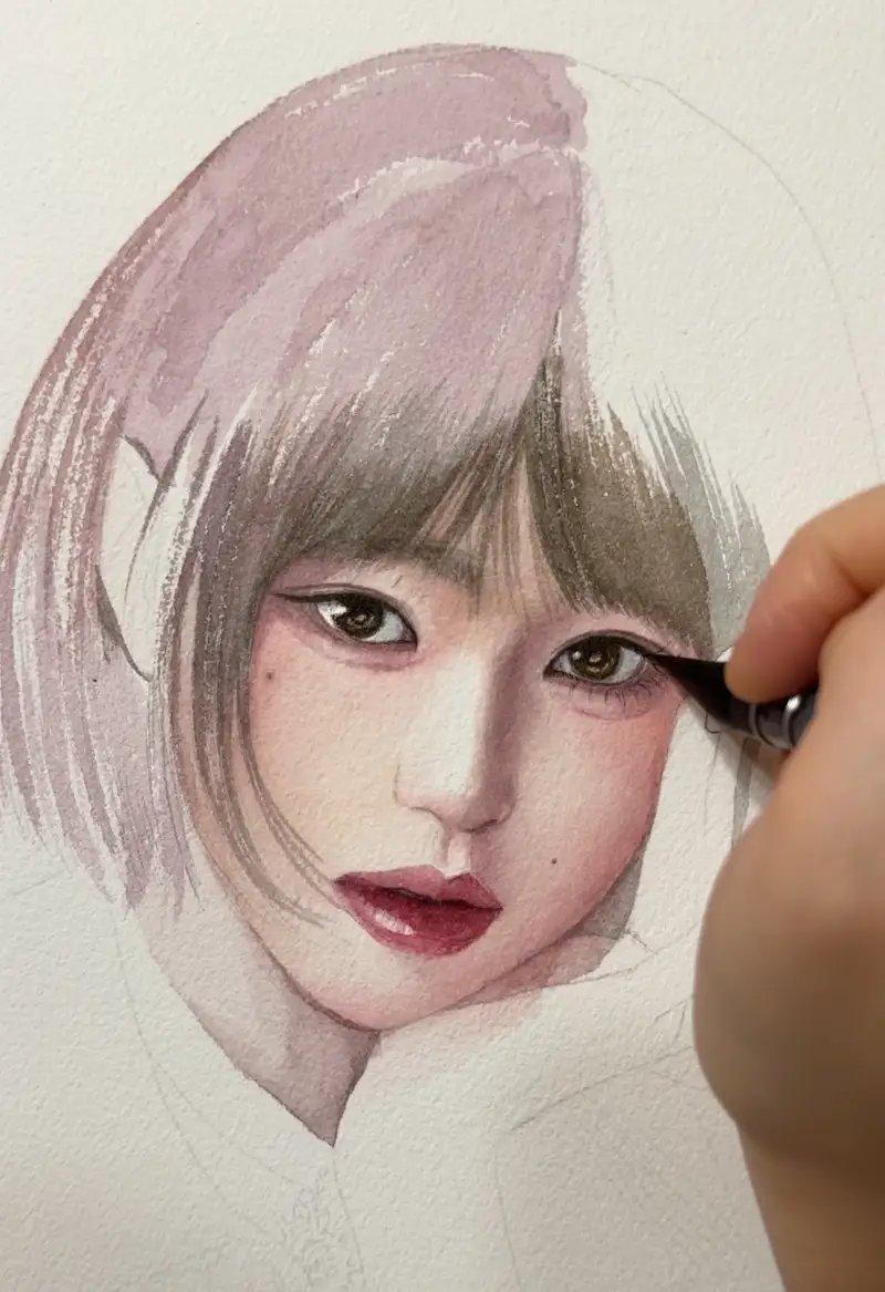붓끝이 굉장히 얇게 잘 모여져서 속눈썹이나 머리카락 가닥가닥 그리기 좋아요! 물도 잘 머금고 있고 수채화하기 정말 좋은 붓이에요💗