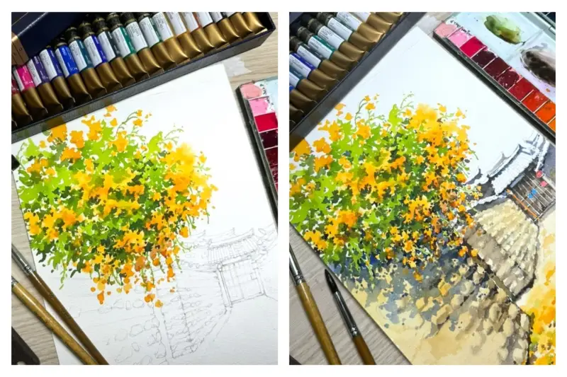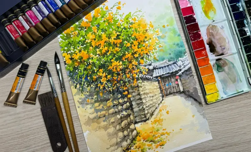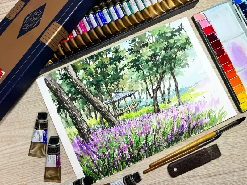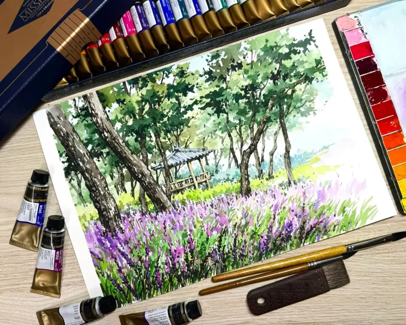 🟩자연에 가까운 선명하고 투명한 색감은 자연풍경을 주로 그리는 저에겐 넘 좋은 물감이예요.