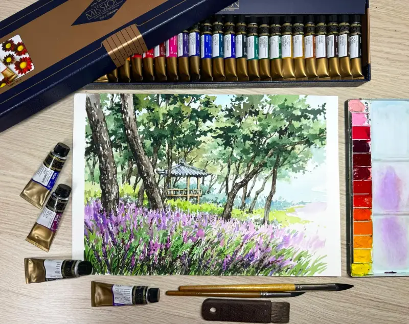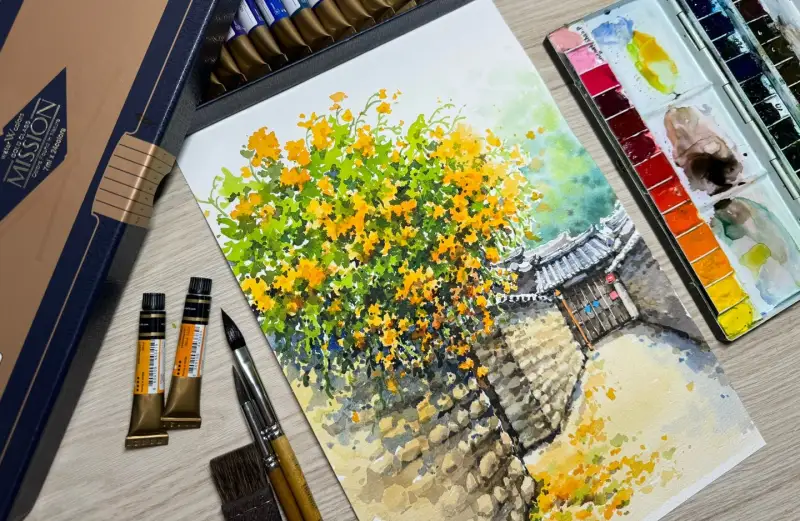 수채화를 좋아해서 다양한 수채물감을 가지고 있지만 선택은 언제나 미젤로 골드미션인 것 같아요.