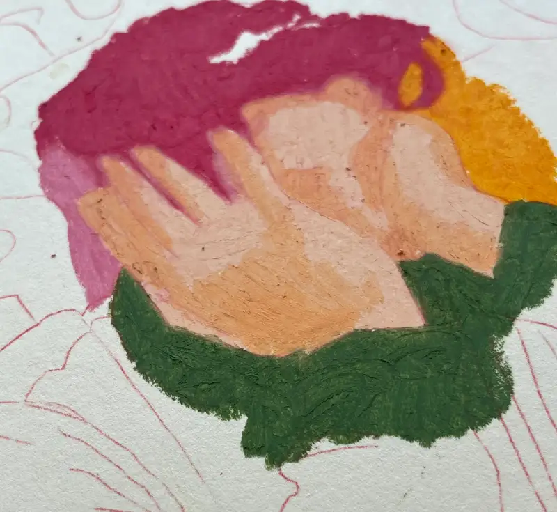 다른 브랜드의 오일 파스텔보다 살짝 더 단단한 질감 덕분에 제가 선호하는 색을 쌓아 올려 톤을 만드는 기법에 정말 잘 맞음.