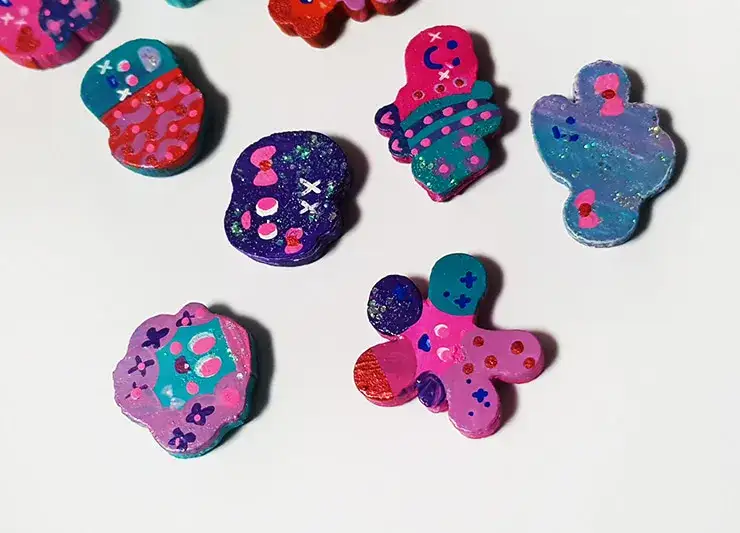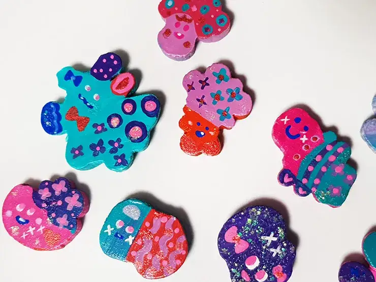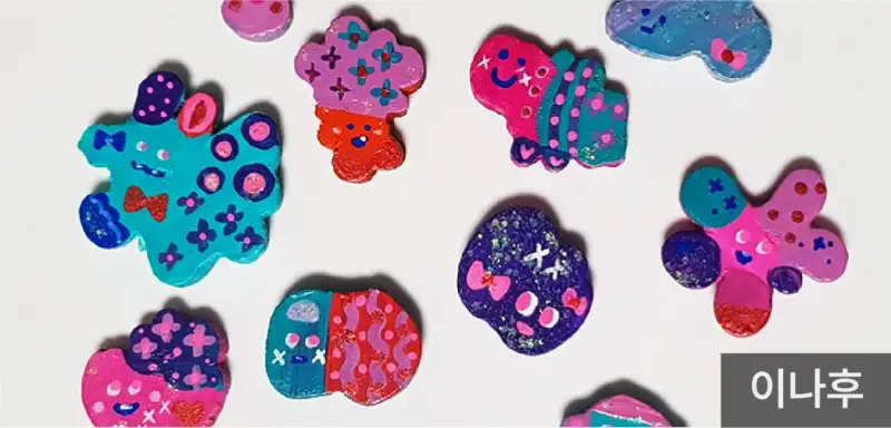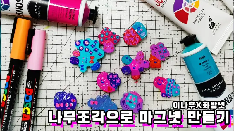 나무조각으로 마그넷을 만들었습니다.