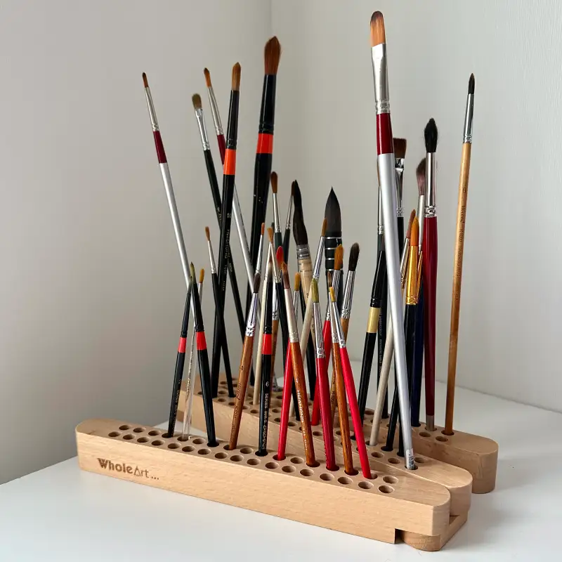 이 붓꽂이는 붓 뿐만 아니라 색연필이나 연필도 꽂을수가 있는데요, 색연필화 그리시는 분들 여기에 다양한 색들 꽂아두고 사용하면 너무너무 예쁠것 같아요🫶