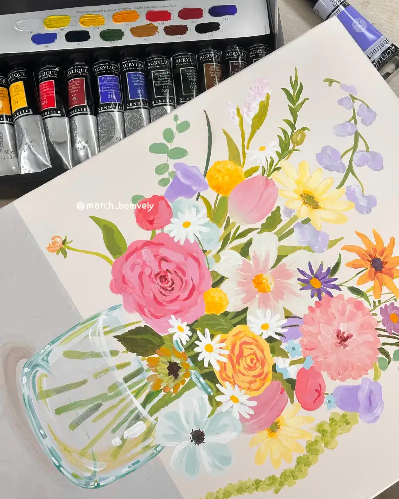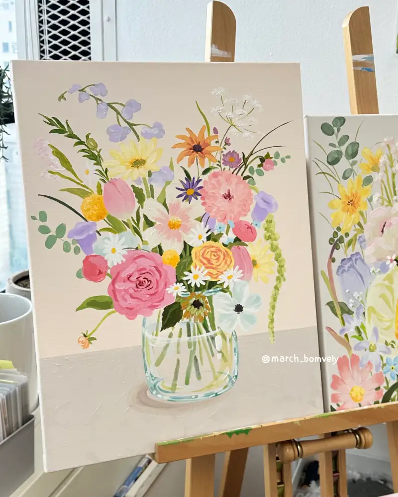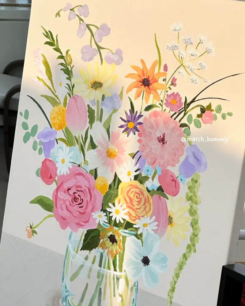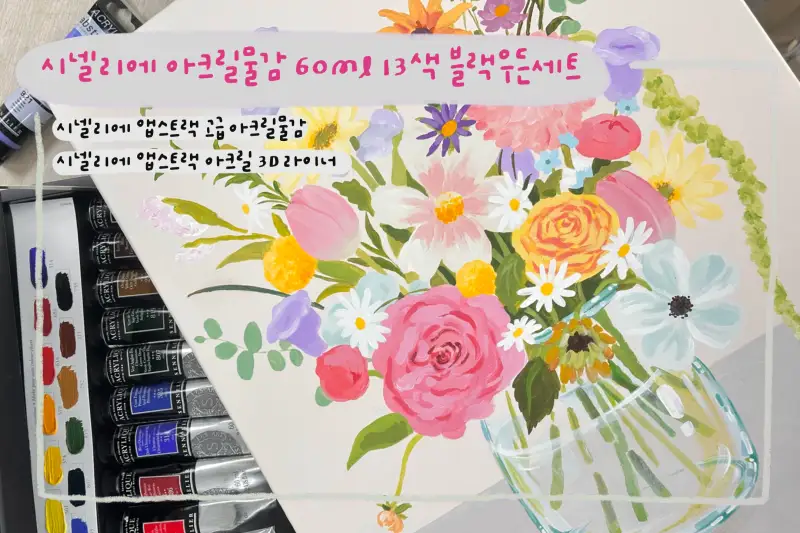 이번에는 시넬리에 아크릴물감으로 예쁜 꽃이 담긴 화병을 그려보았어요💐