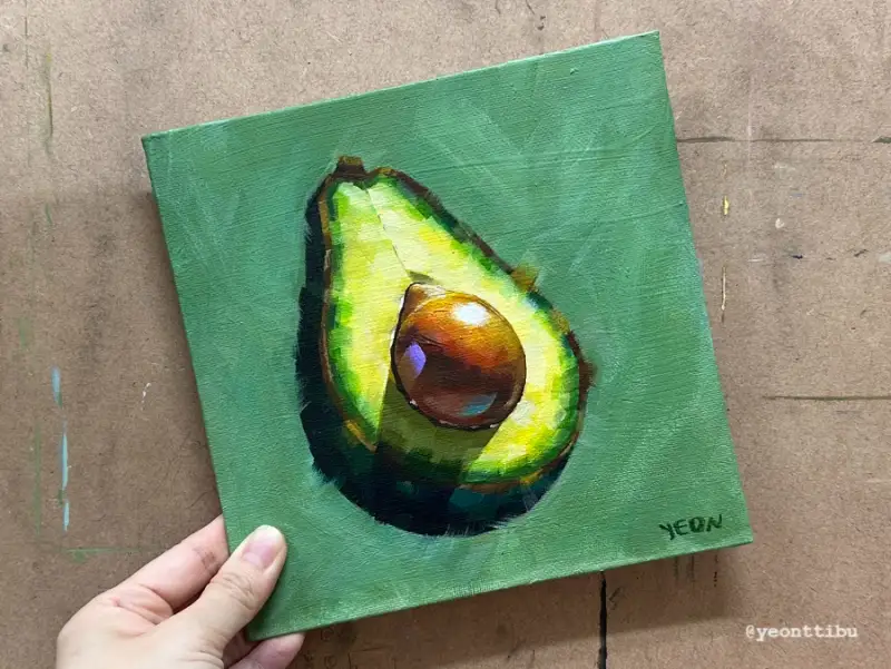 러프하면서도 회화적으로 아보카도를 그리고 싶었습니다.