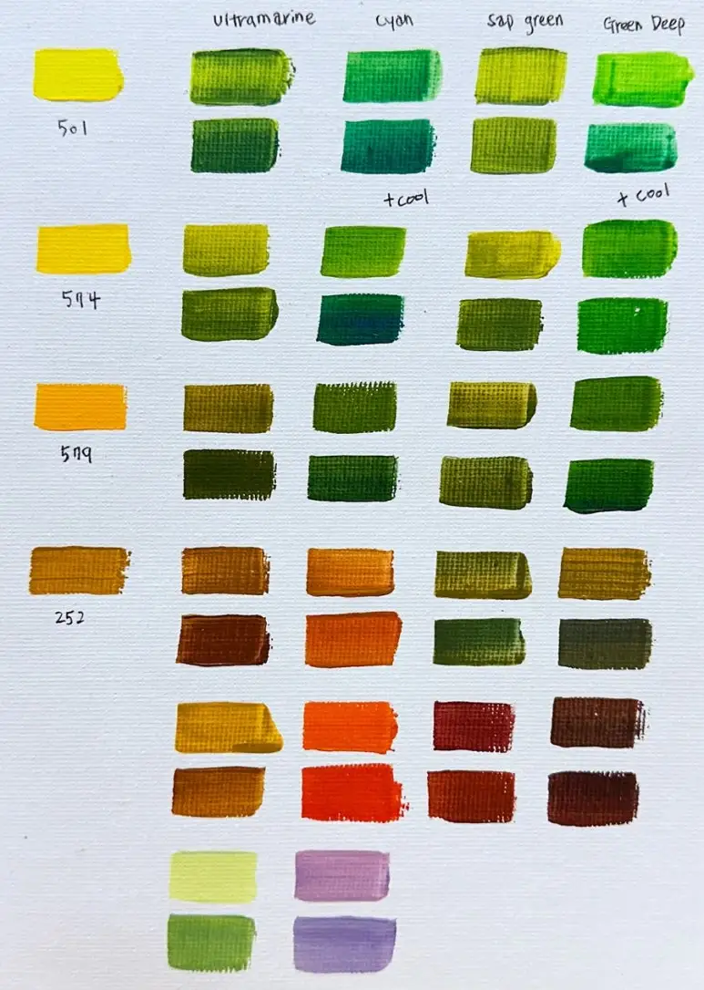 채색 전에 제가 사용할 색들의 조화를 보기 위해 조색 테스트를 해봤습니다.