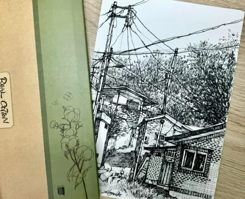 -종이의 거친 요철감으로 인해 펜드로잉시 거친 느낌을 살려 표현하기 좋아요.