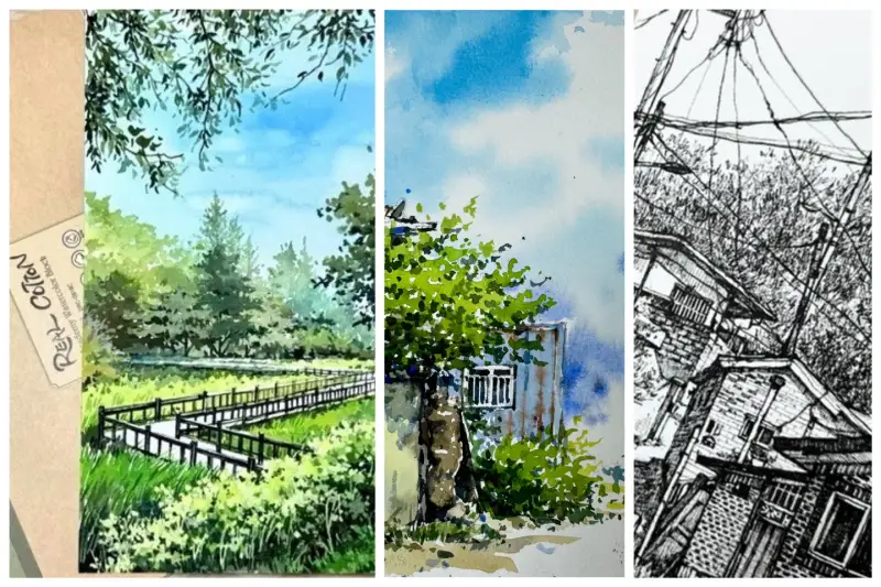 ◻️ 아카데미는 펜을 사용하는 어반스케치와 겹치기 기법에 유리해요.