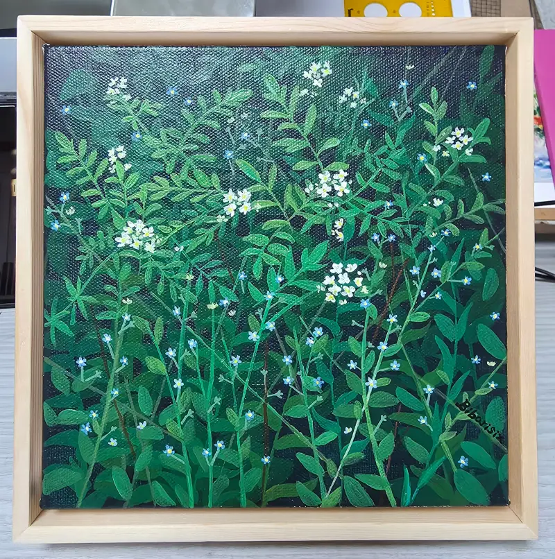 간만에 아크릴물감으로 산책길에 만난 풀꽃(야생물망초, 냉이꽃)들을 그려봤습니다.