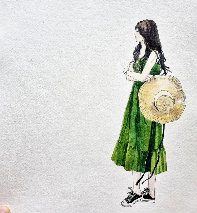 인물만 펜드로잉하고 배경의 수국은 스케치없이 바로 채색했답니다.