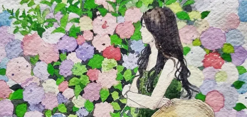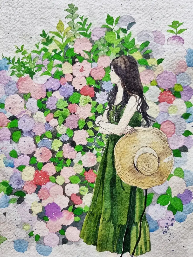 카디페이퍼에 쉬민케 수채물감/수국소녀