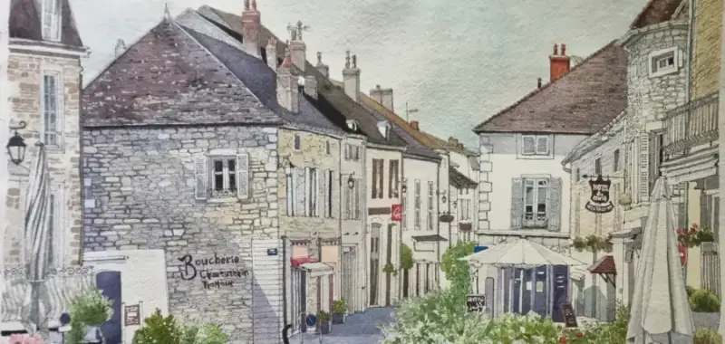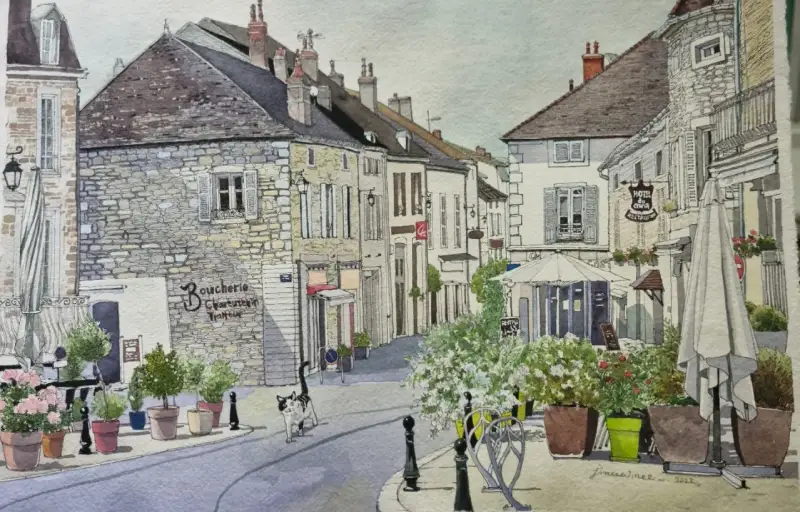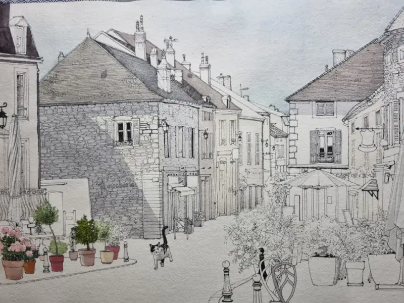 카디페이퍼에 프랑스 뫼르소 마을 그리기