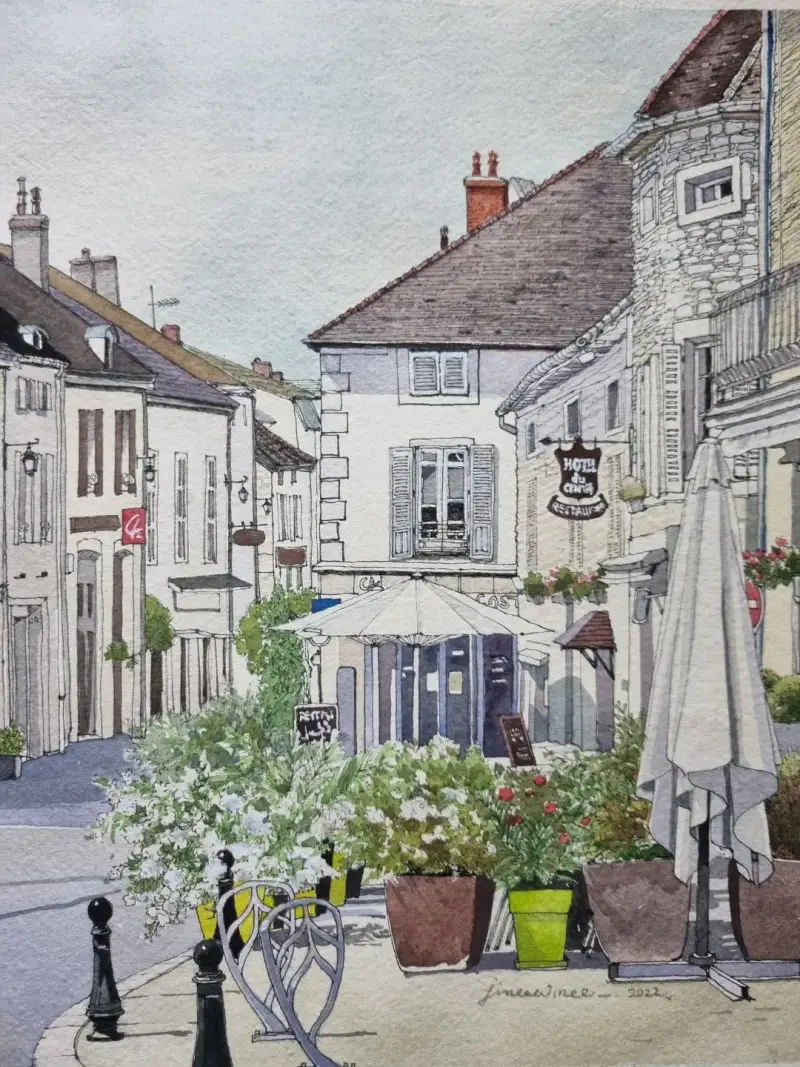 진짜 프랑스는 시골에 있다. . 라는 책의 뫼르소 마을 사진을 보고 그렸어요.