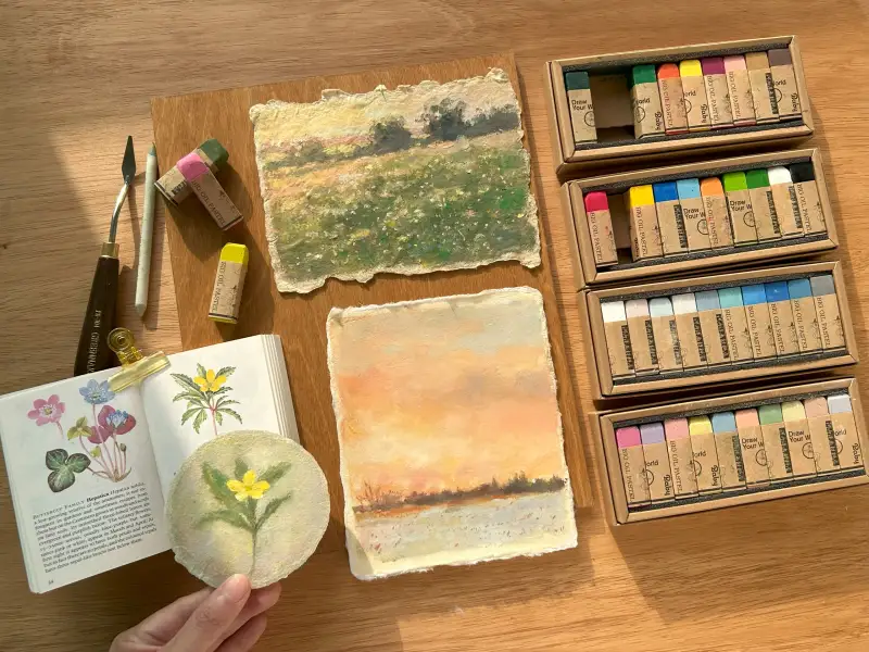 오일파스텔을 떠올리면 따뜻하고 부드러운 촉감이 떠올라요.
