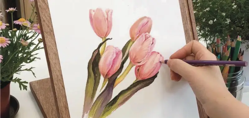 카제랩 원목이젤에 그리는 꽃송이들