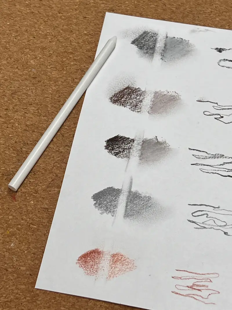 기존 컬러 콘테 위에 화이트 콘테(오른쪽)를 칠해보았습니다.