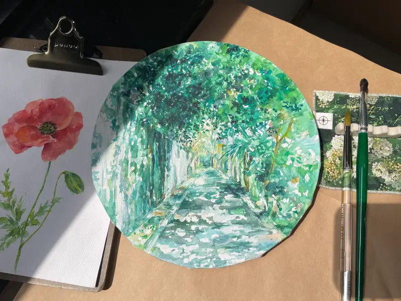 수채화나 과슈와 같은 물감, 파스텔등을 나무나, 캔버스 와 같은 다양한 표면에 사용할 수 있다고 해요.
