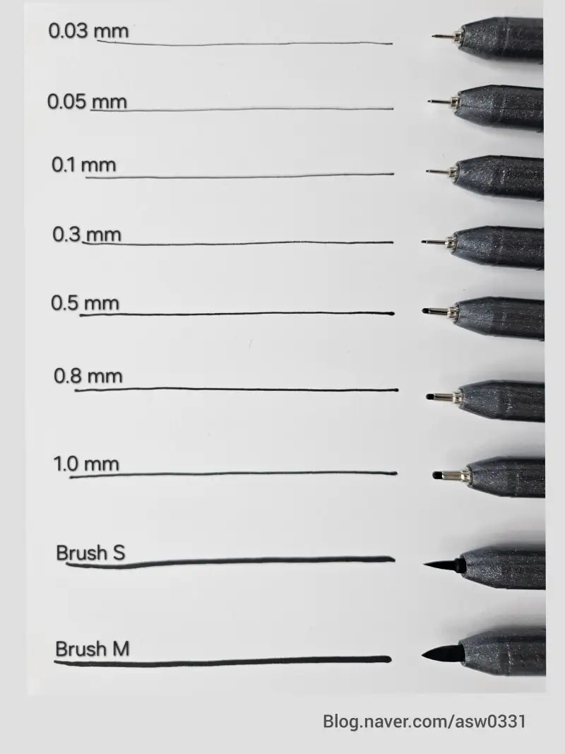 그냥 그리면 아주 얇은 0.8mm의 굵기로 예리한 선도 그을 수 있고