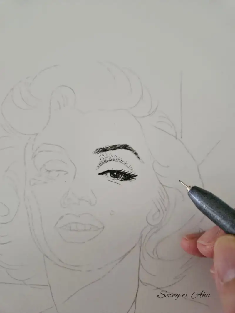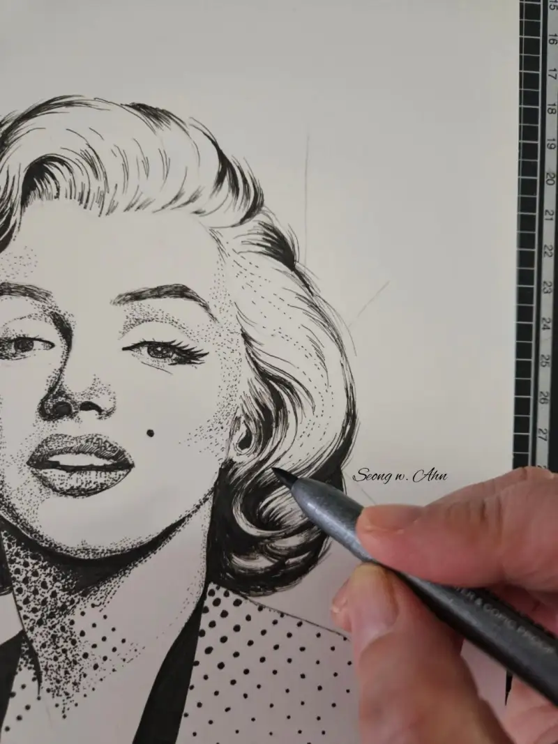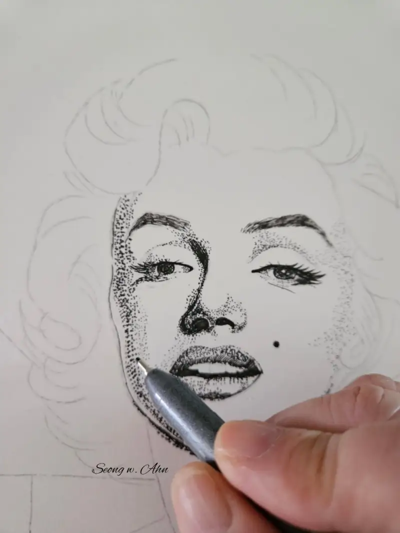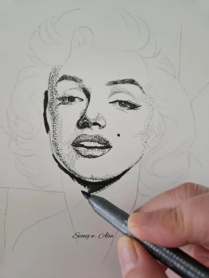 이번엔 9가지 펜으로 마를린 몬로를 점묘로 그려볼게요.