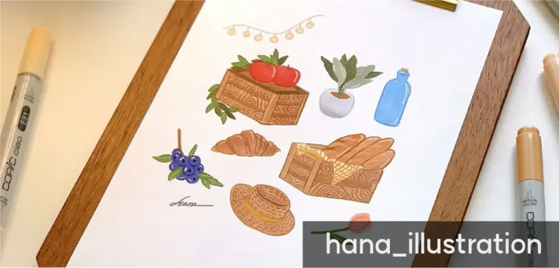 이번에는 코픽 챠오 트윈마카 36색 B세트로 심플한 피크닉 일러스트를 그려봤습니다.