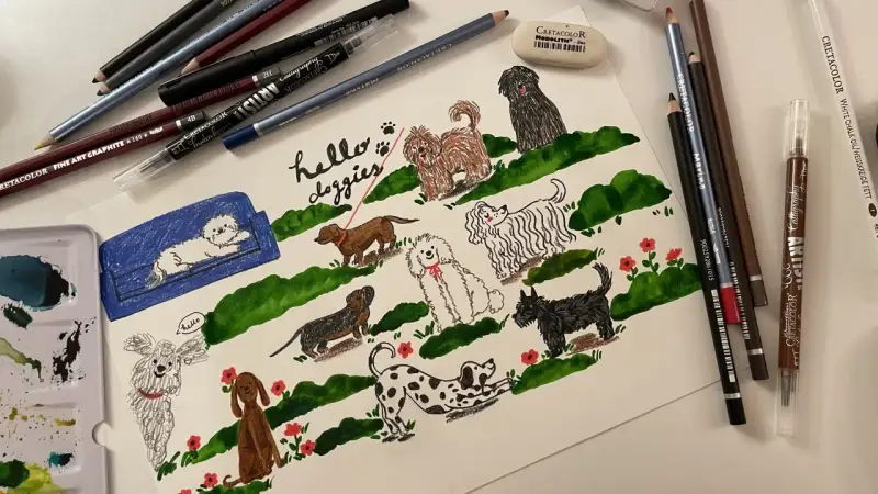 크레타칼라-귀여운 강아지 가족 그리기