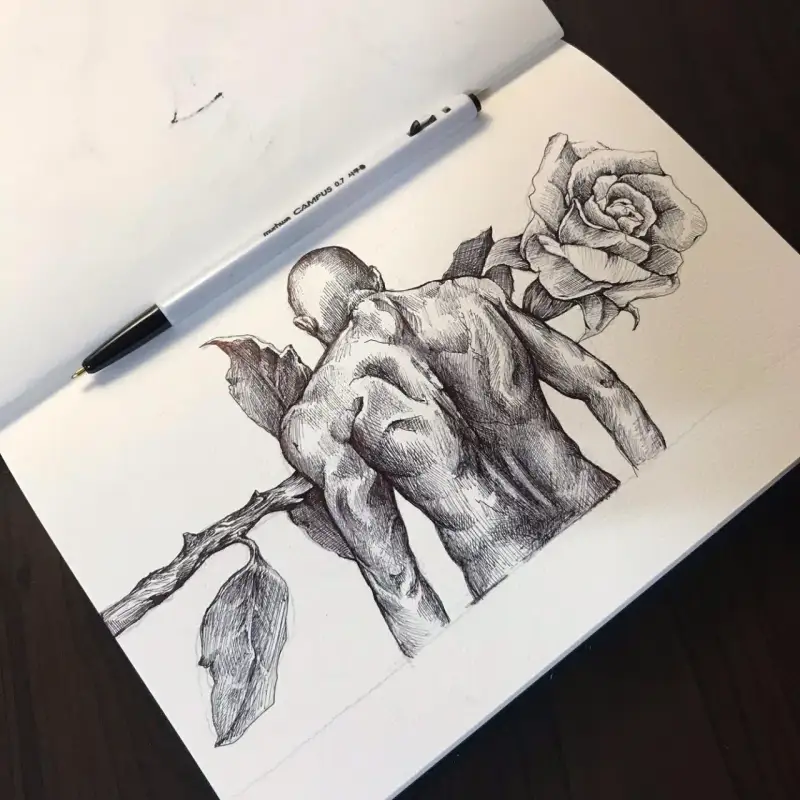 모나미 펜은 펜화를 하시는 많은 분들이 애용하는 제품입니다. 펜화에서 사용할 수 있는 테크닉적인 부분을 편하게 사용할 수 있는 제품입니다. 0.7에 굵기에 다양한 선을 사용할 수 있으며 유저에 필압으로 다양한 선적인, 면적인 부분에서 다양한 톤을 사용할 수 있습니다. 번짐에 예민하지 않으며 단점으로는 사용 시 잉크에 뭉치는 과정이 있습니다.