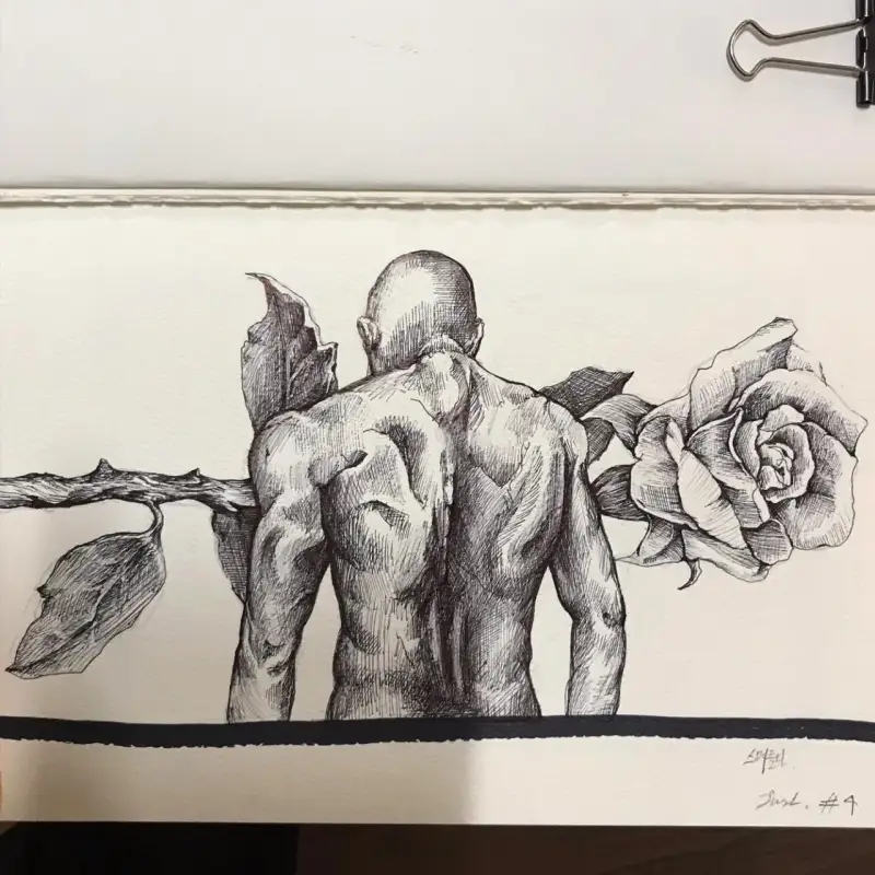 펜촉 작업을 처음 사용해보는 부분도 있지만, 사용해본 결과 라이너와는 달리 거친 부분이 많으며, 작업 간에 계속 잉크를 충전해 줘야 되는 부분이 기존에 사용하는 볼펜 사용감과는 약간 어색한 부분을 느낄 수 있었습니다. 펜촉 같은 경우는 거친 느낌과 예리한 라인 작업으로 인해 러프 스케치와 만화를 하시는 분들이 많이 사용하는 것으로 알고 있는데 경험을 많이 가지게 된다면 볼펜만큼 좋은 숙련도에 작업을 할 수 있을 거라고 생각합니다.