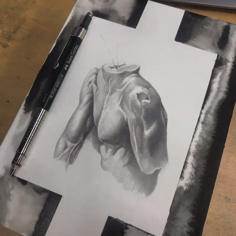Faber-castell - 초반 스케치 작업과 중간 크게 덩어리진 명암을 이어주는 역활을 하게 되었으며 샤프를 이용하는 이유는 샤프한 느낌이 주는 작업방식이 소묘 작업간 밀도를 나누는데 편한 방법이라고 생각해서 작업간 사용하고 있습니다.
