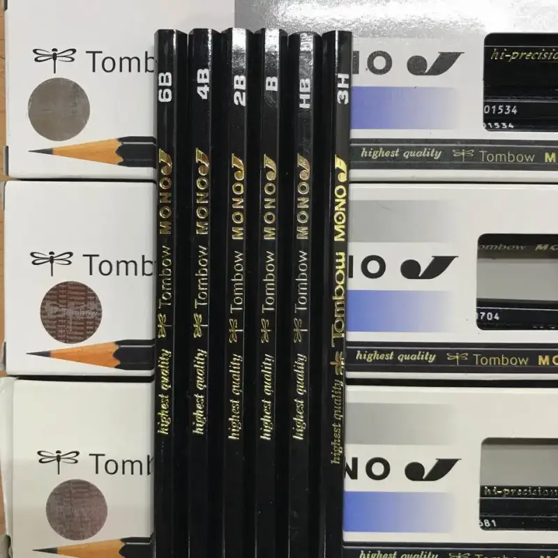 Tombow 사에서 mono J는 4H부터 6B까지 총 10개에 단계구성이 되어있으며 사무용으로, mono100은 9H부터 6B까지 데셍용으로 만들었습니다만 monoJ 4B가 품질 대비 가격이 효율성이 괜찮아서 미술 전공자분들이 많이 사용하게 되었습니다.