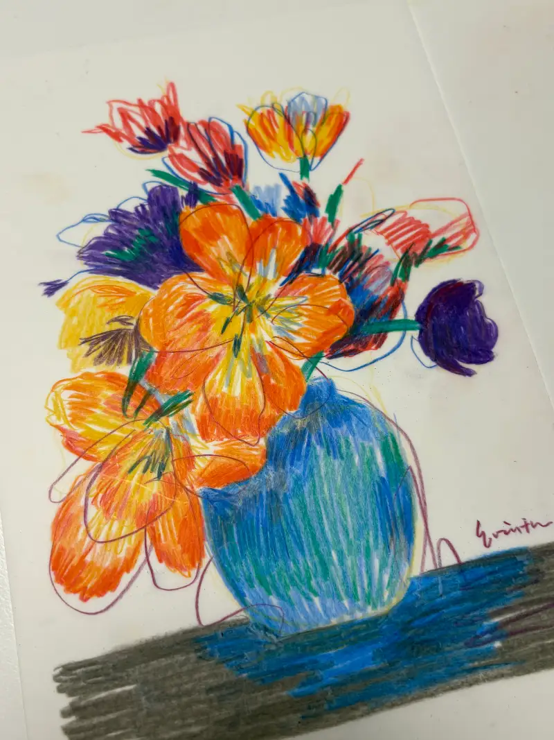 종이를 반투명 종이에 그렸더니 부드러워서 너무 재밌었어요! 근데 종이때문에 색이 여러겹 올라가진 않더라고요.