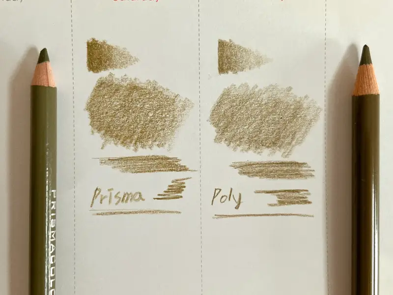 폴리의 발색이 절대 약하지는 않으나 심이 더 무른 프리즈마 쪽이 더 강하고