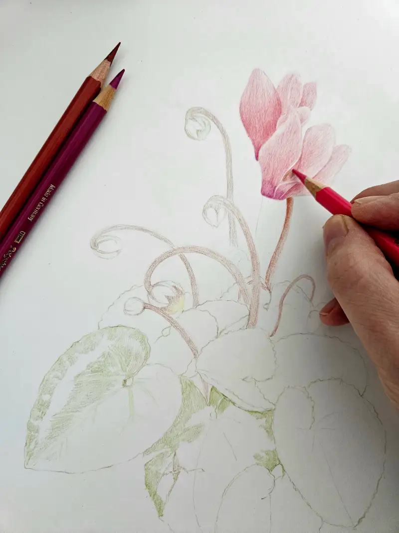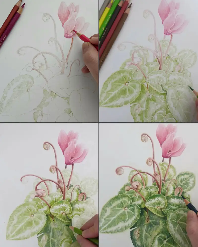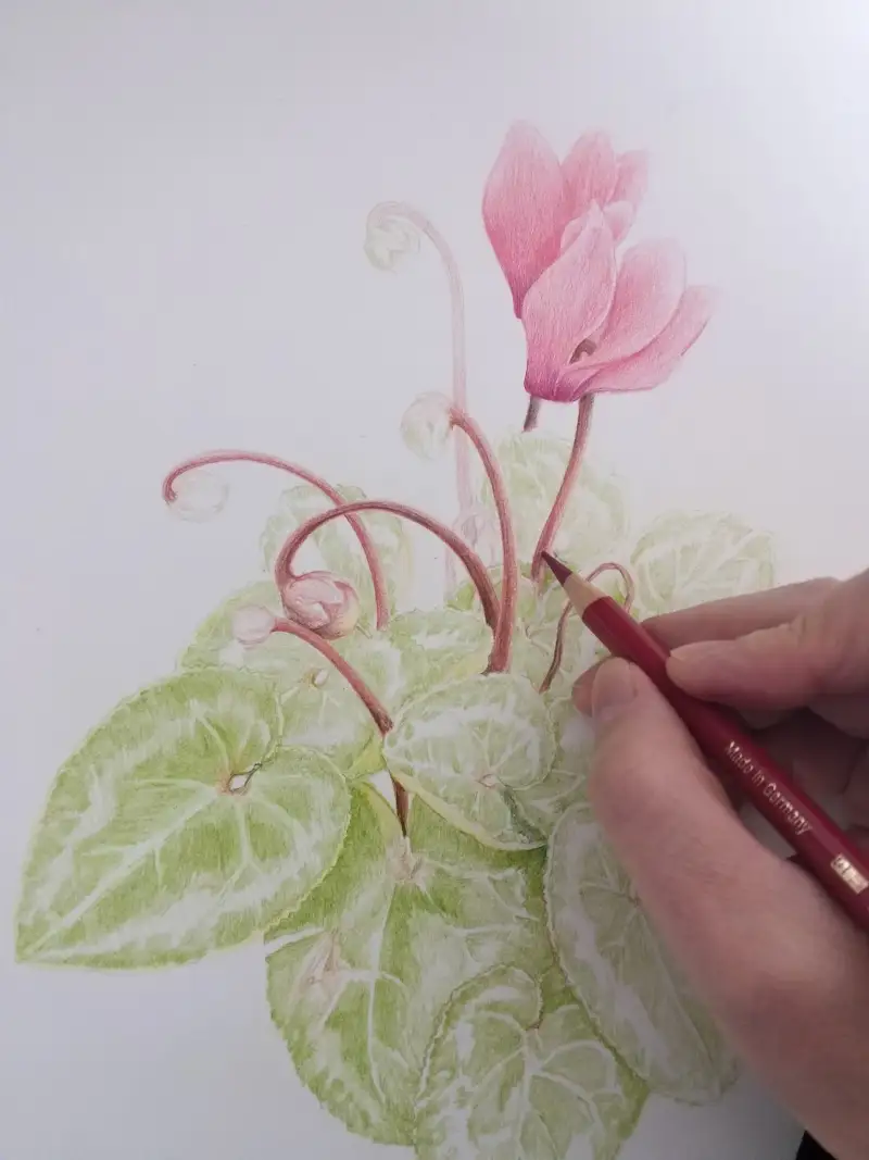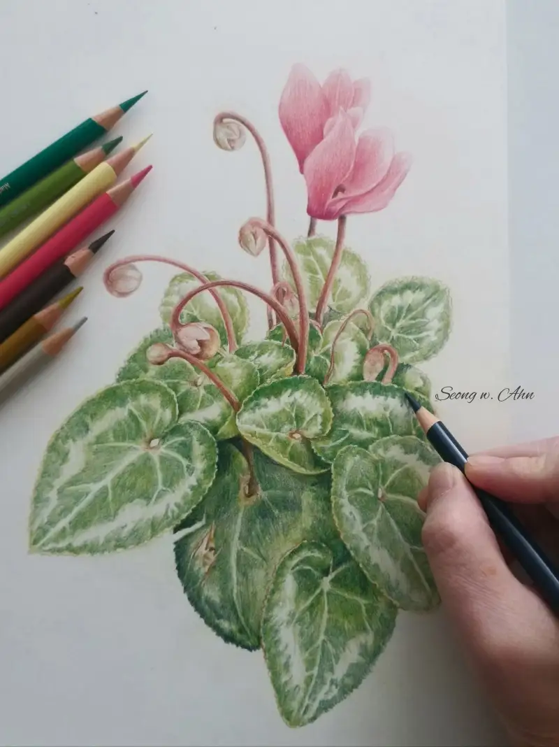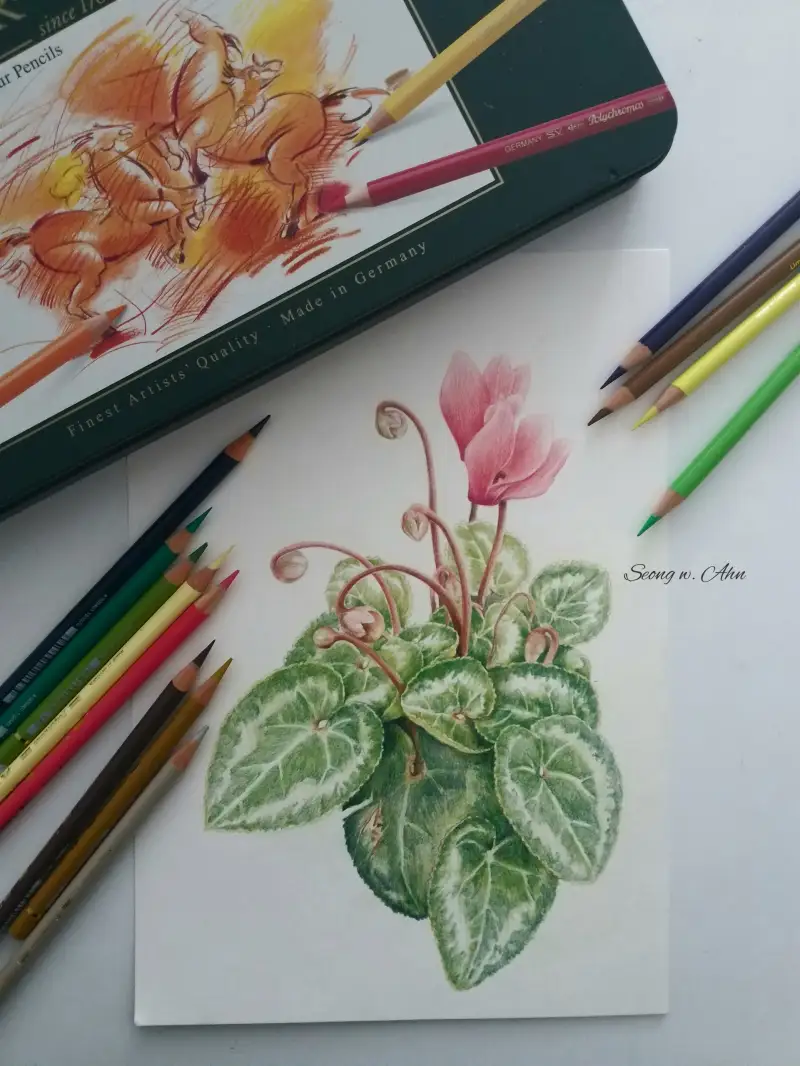 제대로 그림 그리기엔 36색이 너무 적지않나하고 궁금해 하시는 분도 계실거 같아, 파버카스텔 폴리크로모스 36색으로만 부천식물원에서 찍은 시클라멘을 그려봤습니다.