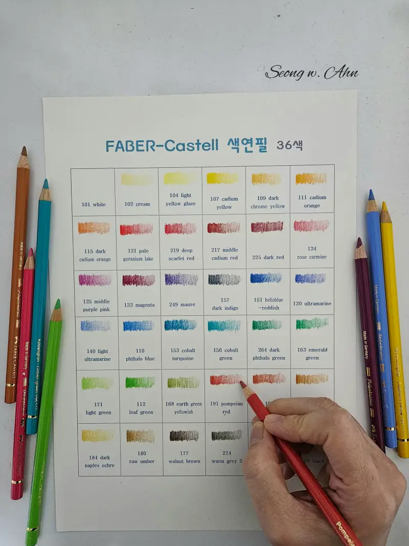 파버카스텔 폴리크로모스는 가격과 낱개판매 유무, 색의 명도 등 제 개인적인 취향까지 고려한다면 시중에 나와있는 전문가용 유성색연필 중 가장 가성비가 좋은 색연필 입니다.