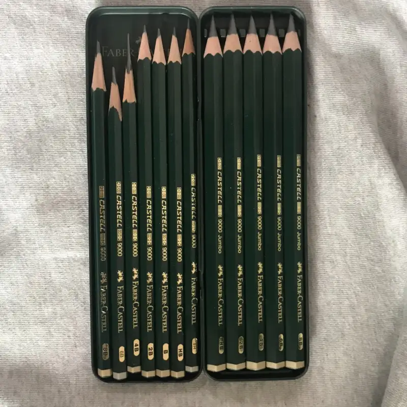 9000 제품은 16단계에 구성을 가지고 있습니다. 흑연자체가 하드해서 B단계에서도 흑연에 발림이 유용하나 H – B에 차이점을 크게 두지 않습니다. 그렇기에 기본적인 4B하나로 많은 단계를 표현 가능하며 필요시에 섬세한 작업을 위해서 많은 단계를 구비하시면 될 것 같습니다.