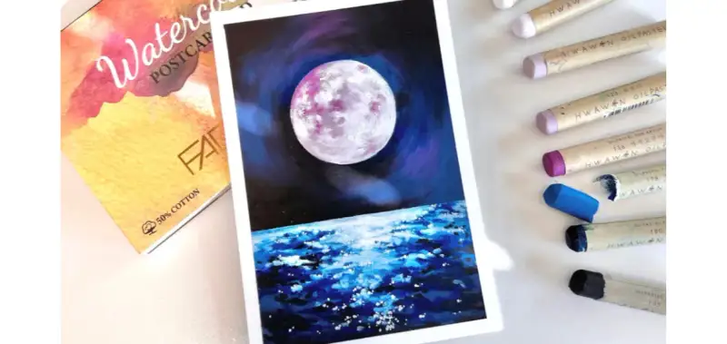 이 보름달 풍경을 그린 종이는 ‘파브리아노 포스트카드 세목’인데요, 오일파스텔 종이로 추천드리고 싶어서 소개해요👍