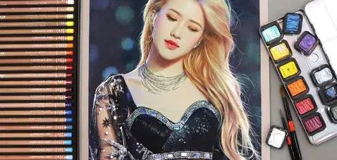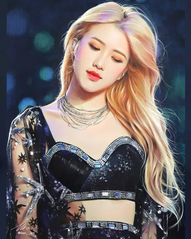 그래서 예전부터 그리고 싶어 저장해 두었던 로제의 코첼라 무대 사진을 그려봤어요