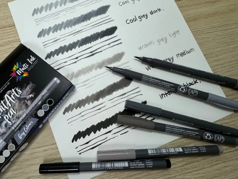 -warm grey light. warm grey medium. intense black. cool grey light. cool grey medium. cool grey dark