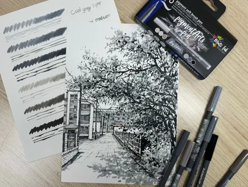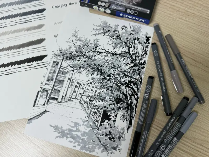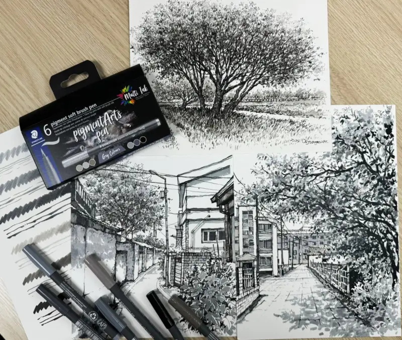 펜드로잉을 좋아하신 분들에게 좀 더 탄탄한 밀도감과 좀 더 빠르고 편안한 명암표현을 원하시다면 스테들러 피그먼트 라이너는 넘 좋은 재료입니다.
