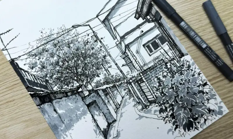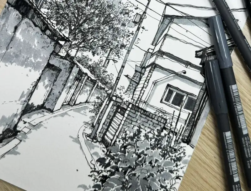 -어반스케치에서 빠르게 펜드로잉후 부족했던 밀도감을 자연스럽게 표현할 수 있어서 좋아요.