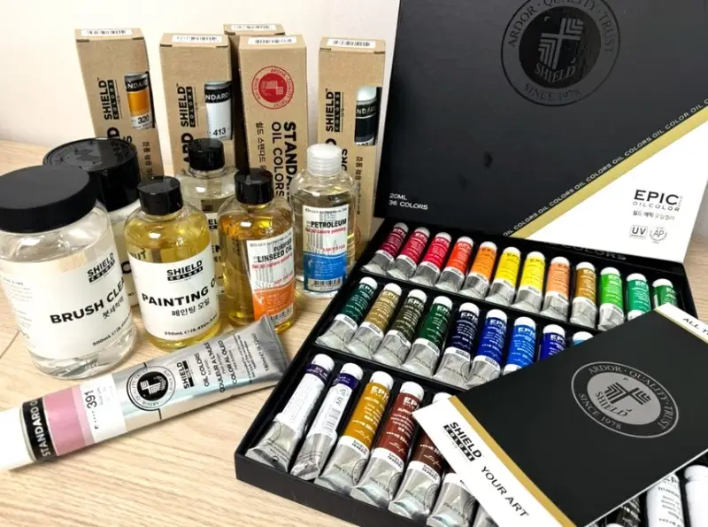 편안하게 다가갈 수 있는 쉴드 유화물감과 재료