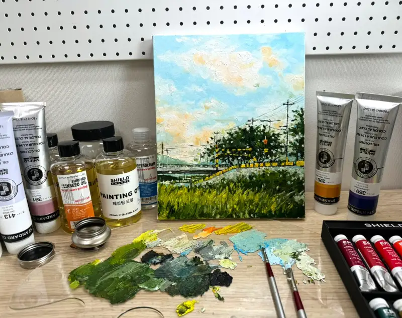 ✨유화를 처음 시작하는 초보자분들도 쉽고 간편하게 페인팅오일하나와 유화물감만 있으며 쉽게 다가갈 수 있어요.