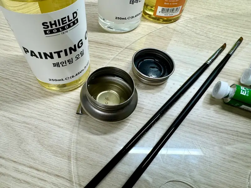 간편하게 사용할 수 있는 테레핀과 린시드유를 7:3정도의 비율로 혼합하여 사용자가 쉽게 사용할 수 있는 오일