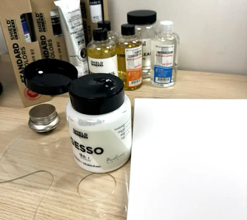 -쉴드젯소는 촉촉함이 적당해 원액을 그대로 골고루 발라준 뒤 다 마른 뒤 유화작업을 해주세요.