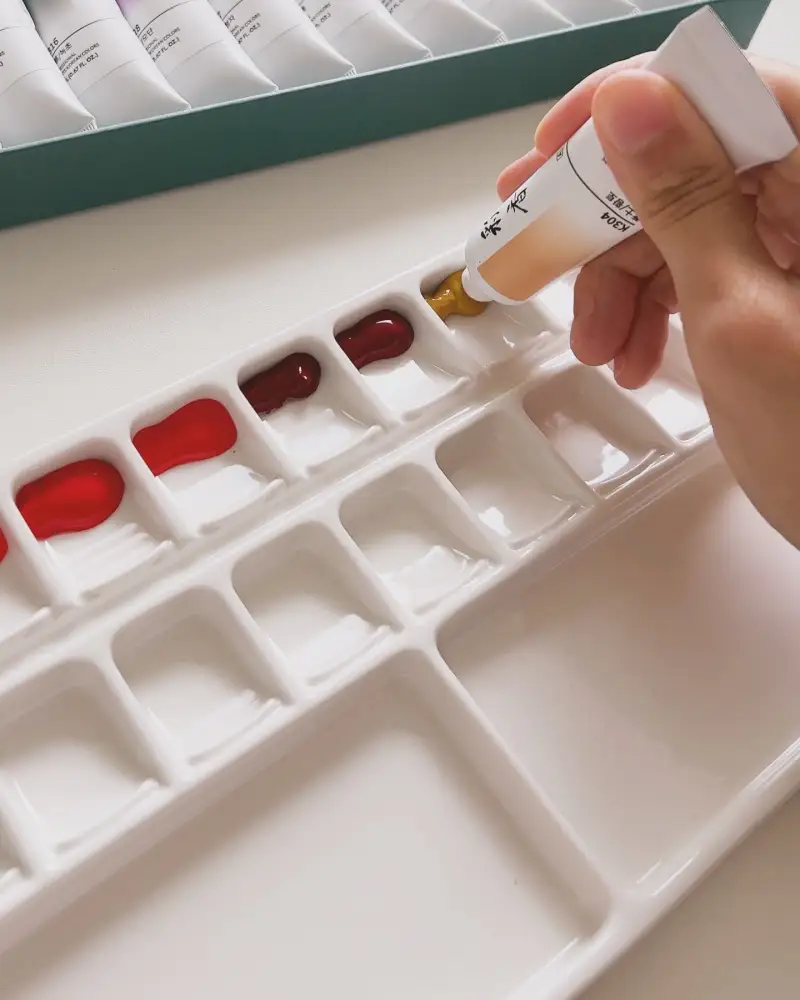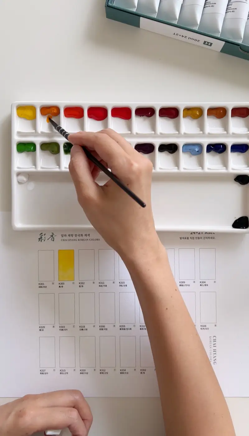 도자기 팔레트는 감성템이라 꼭 하나는 갖고 싶다는 마음이 있었어서 사실 화방넷 페인터즈로 활동 시작하면서 바로 구매했었어요!😆 어떤 물감을 이 팔레트에 짜볼까 고민만 하다 드디어! 알파 한국화 물감으로 개봉을 했지요! :) 팔레트에 짠 한국화 물감은 세트A 상품이에요.