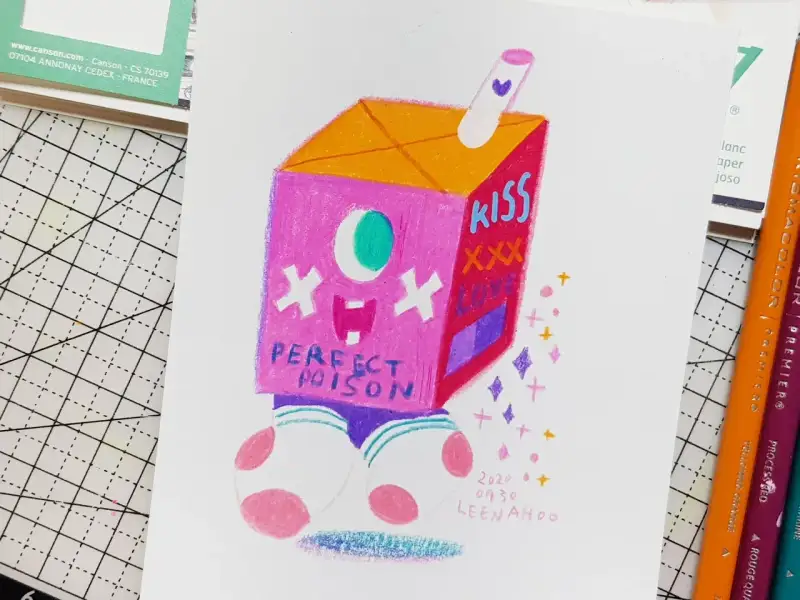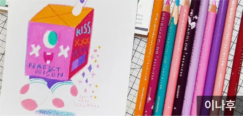 프리즈마 유성색연필 150색중 좋아하는 색을 골라서 캐릭터를 그려봤어요.