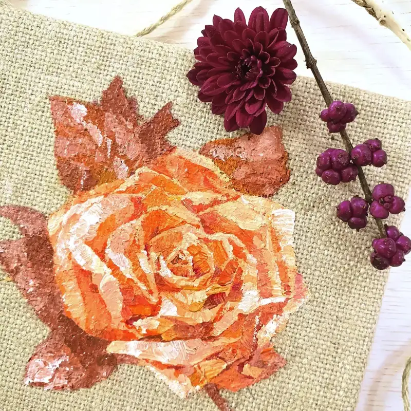 피닉스 정사각 황마 캔버스에 그려본 주황색 장미 - 화방넷 커뮤니티