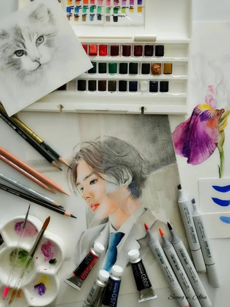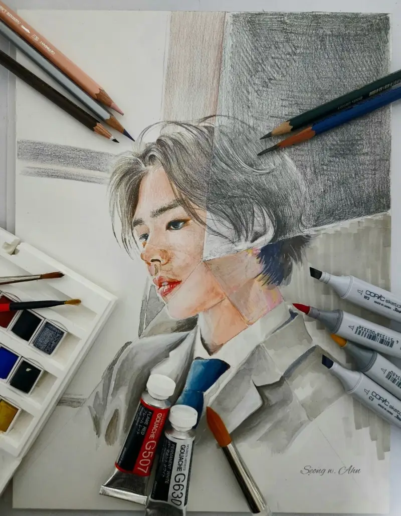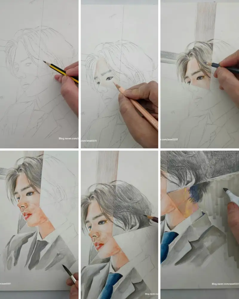 박보검을 그려보며 어떤 재료와 잘 매치되는지 알아볼게요.